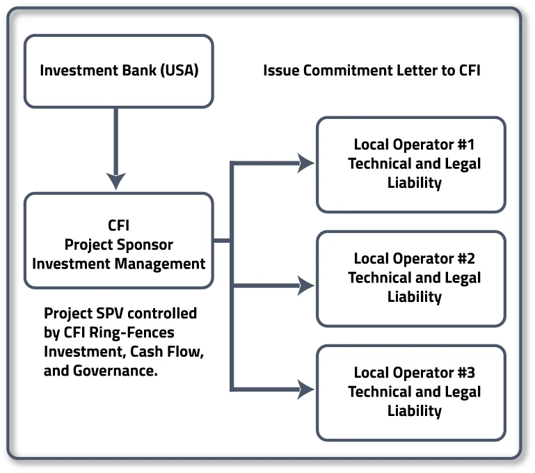 Under this structure, CFI maintains strategic oversight and governance, while local operators are responsible for technical and operational execution in accordance with applicable contracts and regulations.